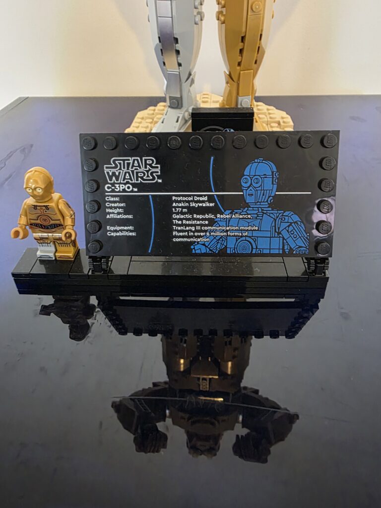 The set is finished off with a display plaque and a brilliant C-3PO minifigure which features highly detailed arm and leg printing (yes, including the silver leg!).