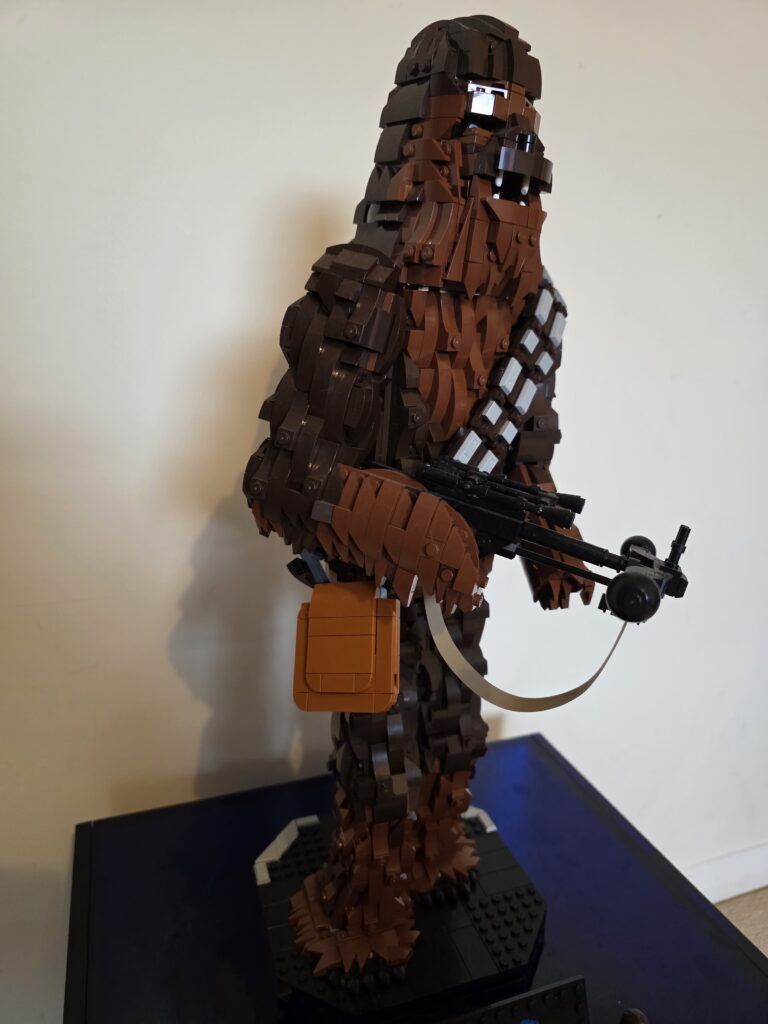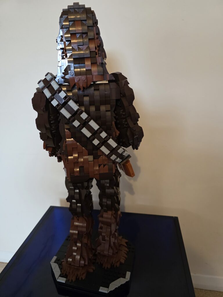 The finished model has an incredible presence. He stands very tall at over 46 cm (18 in.) and has a real weight to him. You can pose him in his classic stance, holding his trusty brick-built bowcaster, ready to take on the Empire.